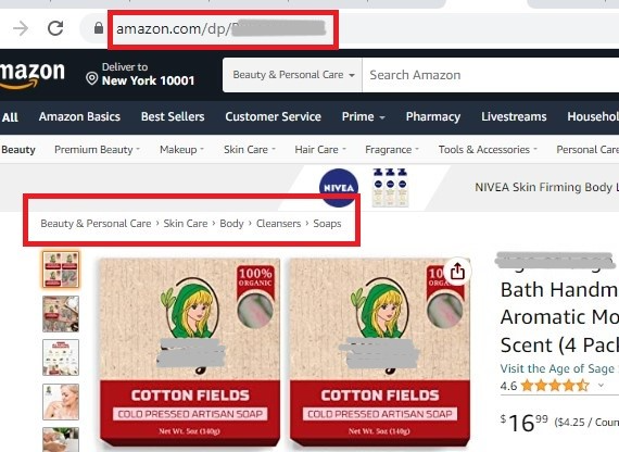 3. You can see the category/browse node above the Main Image. If there's no category/browse node showing, then the category isn't properly reflected on Amazon's end.
