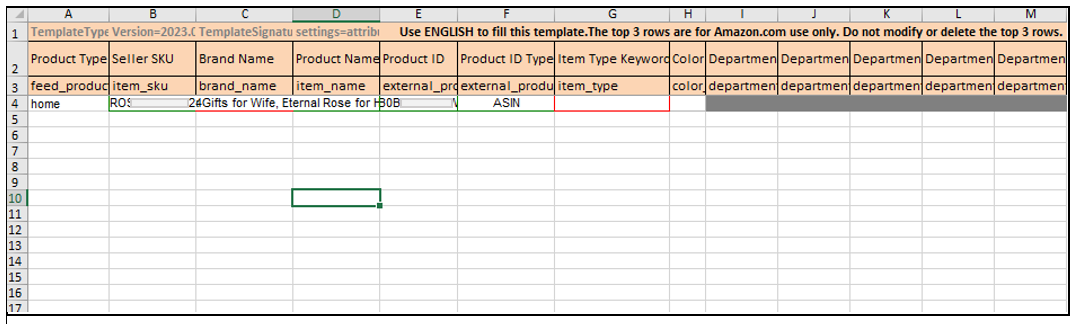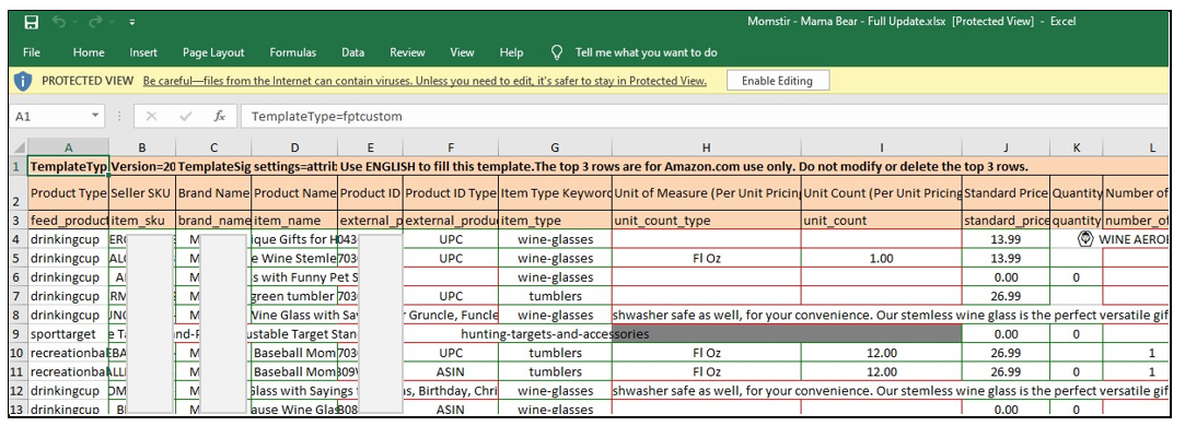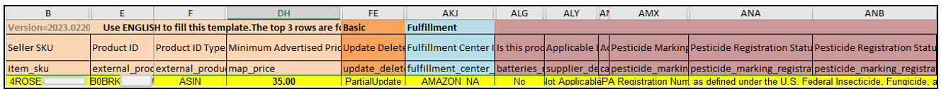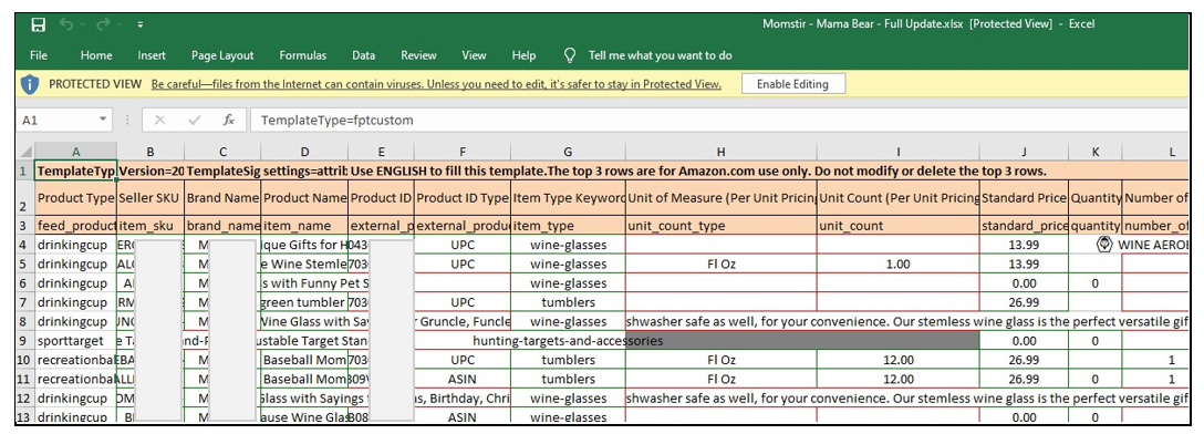 - If it’s FBA, you have to fill out the following columns: