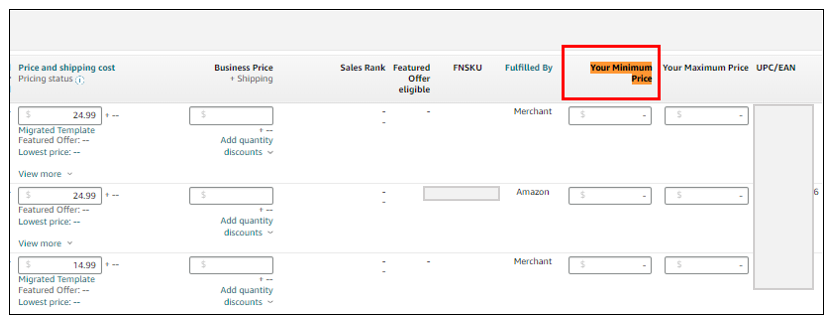 5. Once you’re done with Step 4, go back to your Manage Inventory and refresh the page. At this time, you will see a column under “Your Minimum Price”