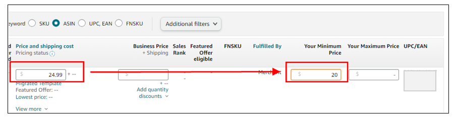 5. Take the one SKU/ASIN in question and input the map_price also known as the Minimum Advertised Price.