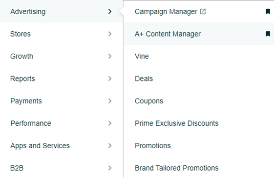 Log in to the correct seller central account. Then go to Advertising > A+ Content Manager