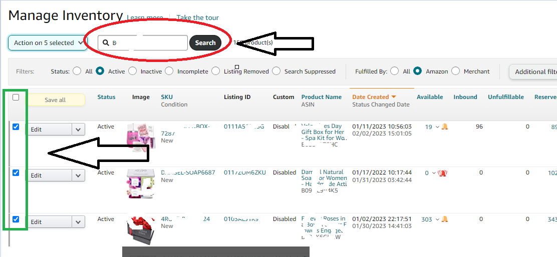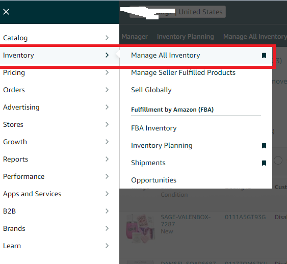 2. Select the items you want to remove or enter the ASIN/SKU in the search box.