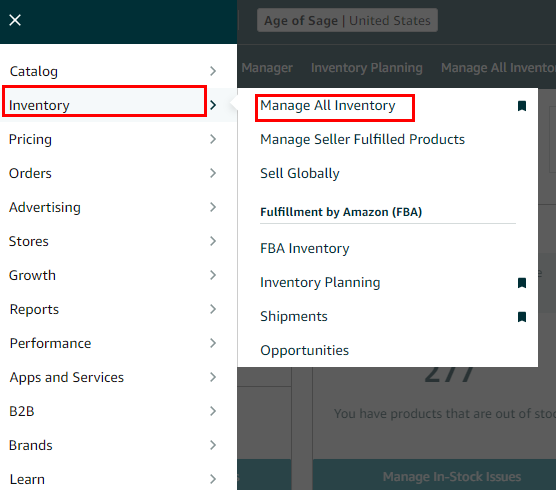 1: Hover your mouse to Inventory > Manage All Inventory