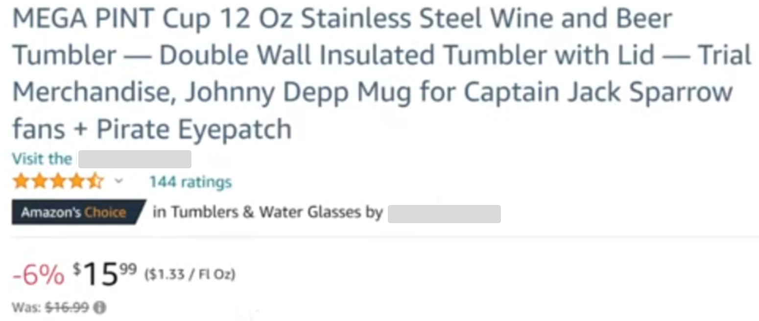 Provided below is a sample listing on the Amazon detail page that does not include a List Price Setup.