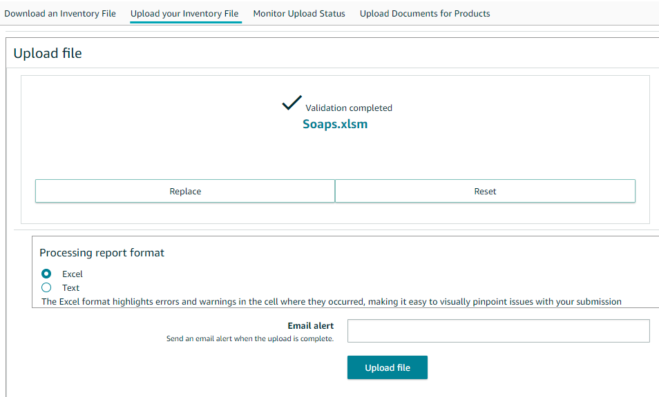 6: Once done, save the flat file and upload it to the Amazon Seller Central account.