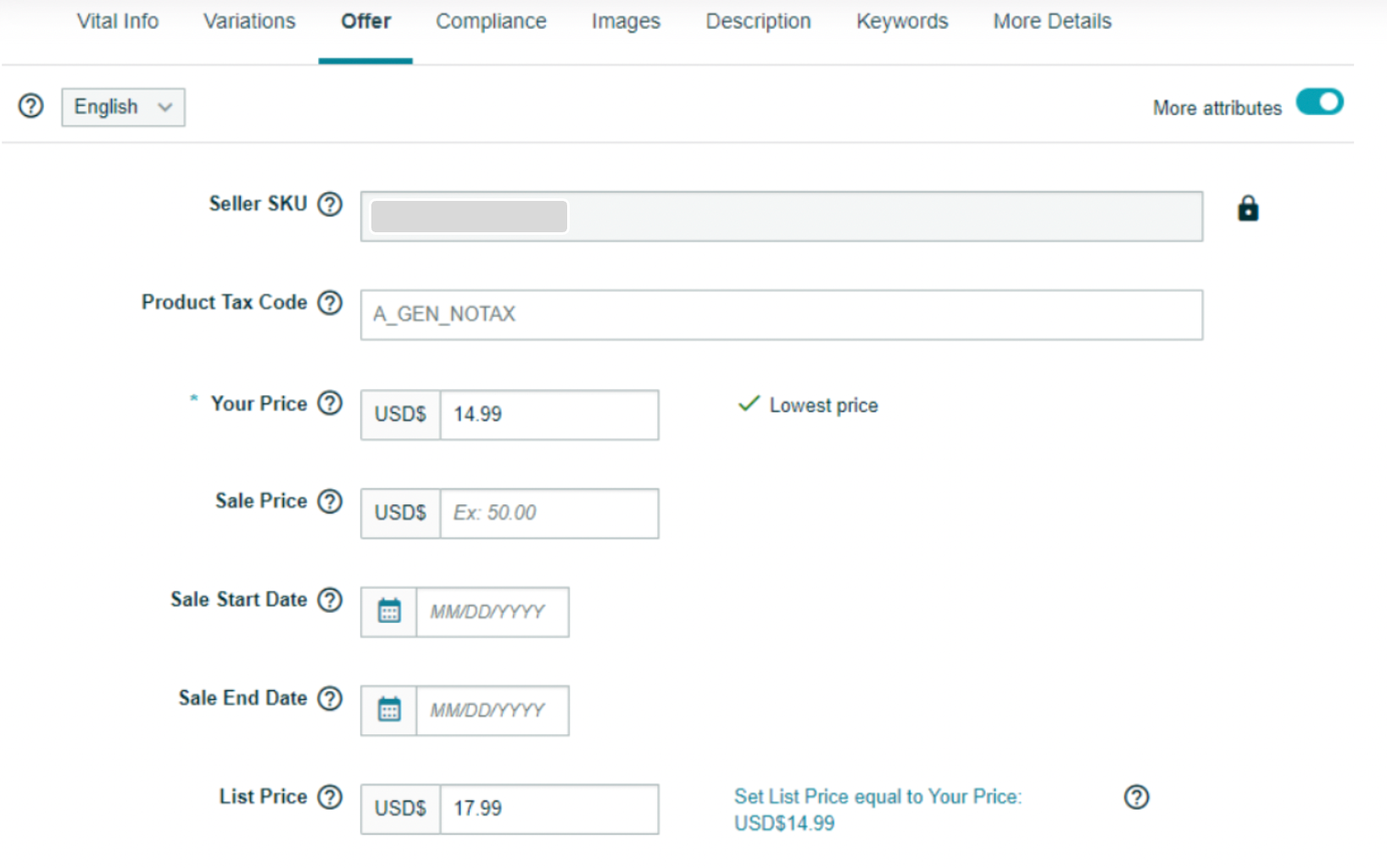 3: Go to the Offer Tab then place your List Price