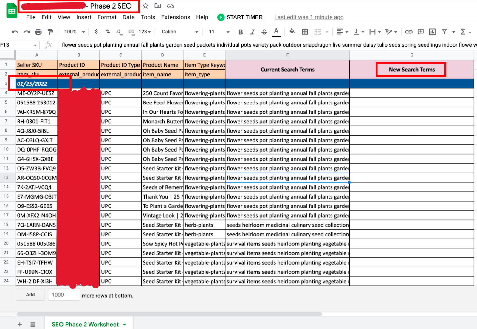 Phase 2 SEO is done at least 30 days after Phase 1 SEO is completed. If titles, bullets, and descriptions (TBD) are not implemented on the backend, do not proceed with Phase 2 yet. Also, make sure that the listing has a 200+ organic keyword count. Otherwise, Phase 2 must not be done.