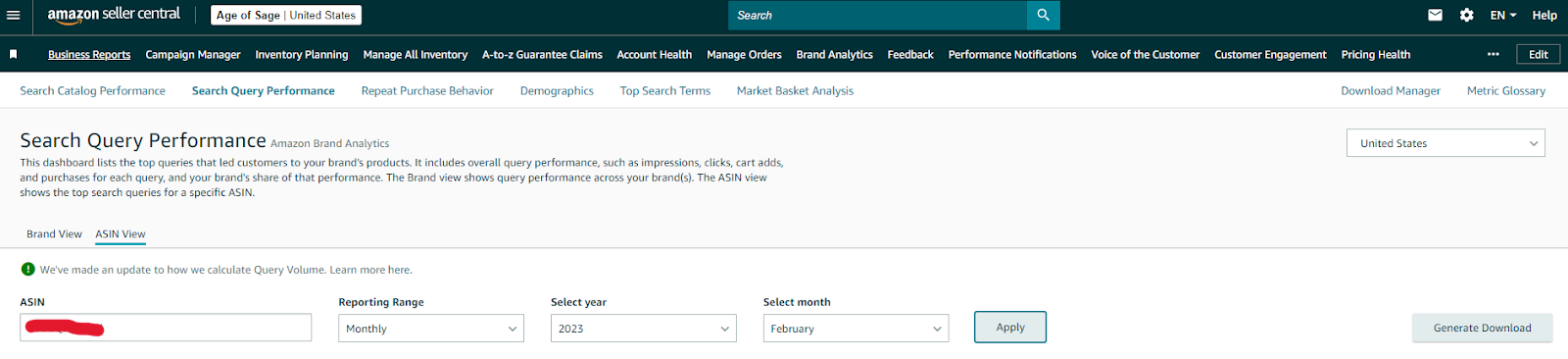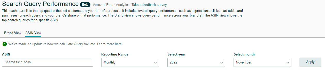 - ASIN view, NOT brand view