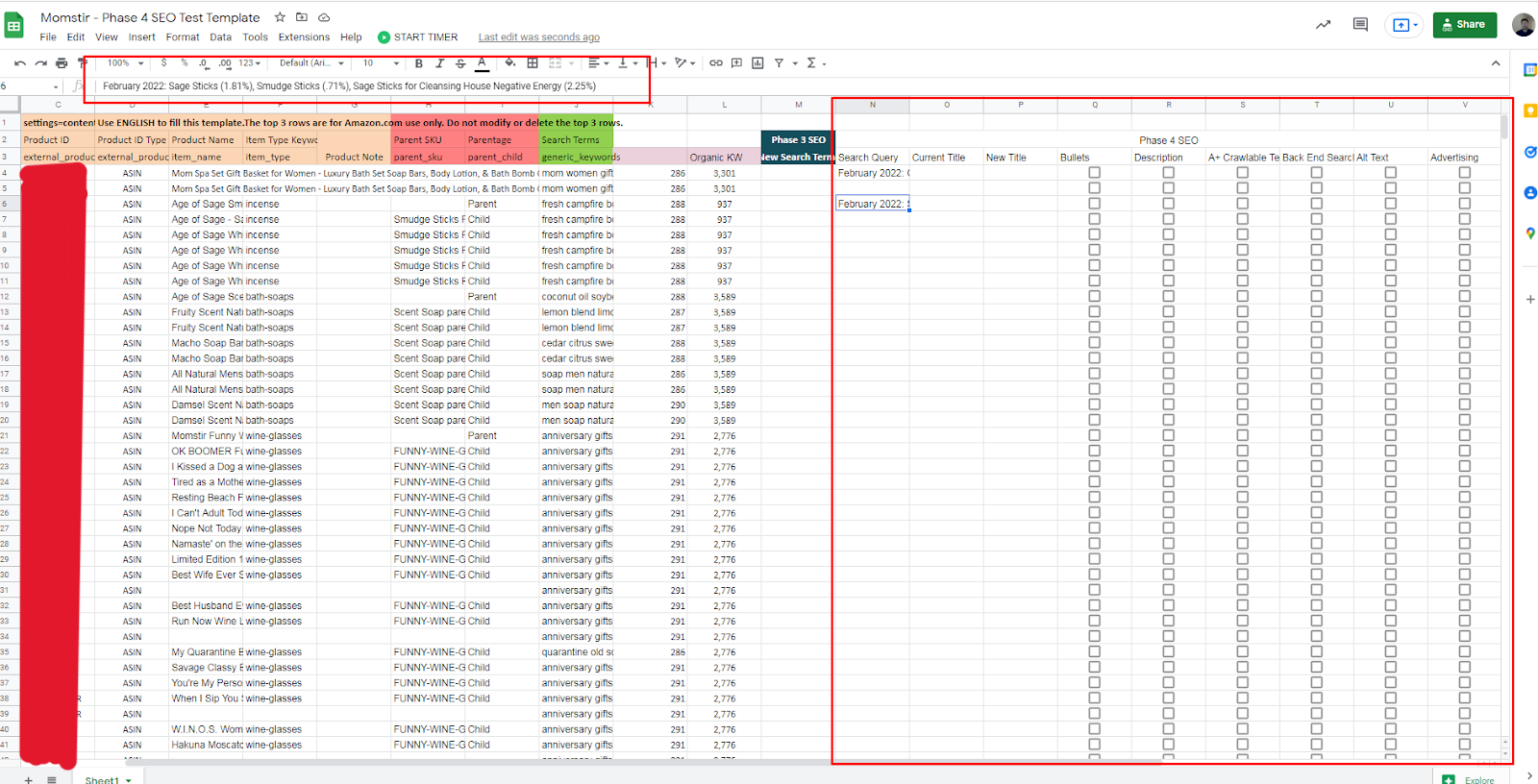- Ensure that the list of ASINs you are optimizing matches the overall criteria for this phase: Mature indexed listings which are currently eligible for phase 3 SEO