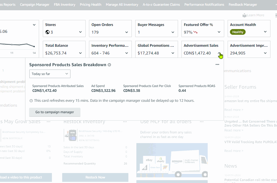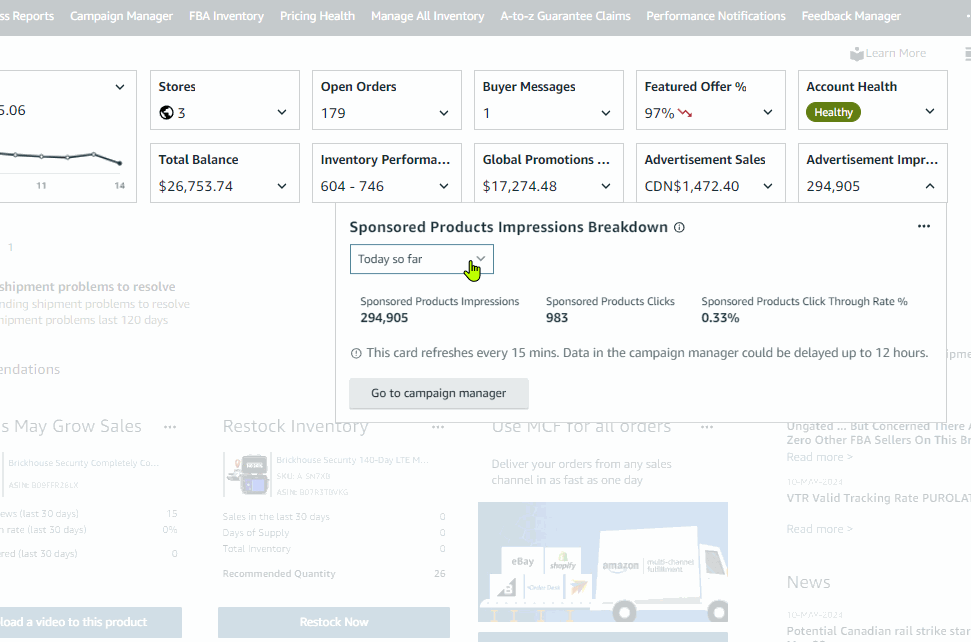 Note that these widget cards are really useful, you can view metrics for different marketplaces without switching back from each by simply middle/scroll wheel clicking or control clicking each market place values from the the expanded widget to open each on different tabs.