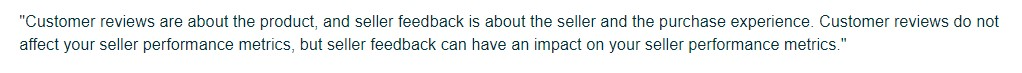 - Seller feedback refers to the customer's feedback on you as the seller and their purchase experience. It also refers to the stars the customer gave you as the seller.