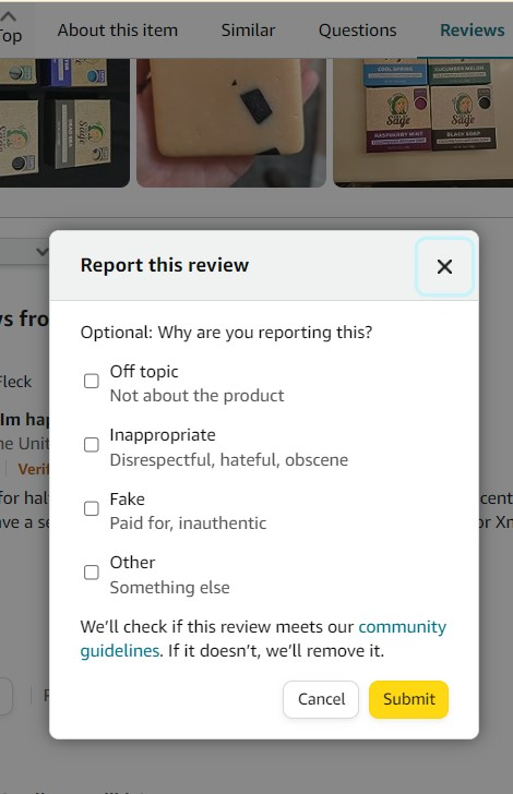 - Click this button if you think that this review is inappropriate. Doing so will open a pop-up window where you can choose a reason for your submission.