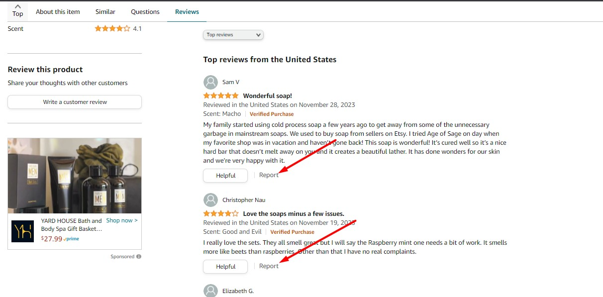 I. Use the "Report" button under the product review in your Product Detail Page (PDP).