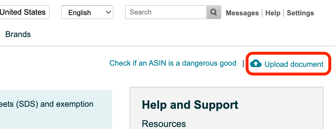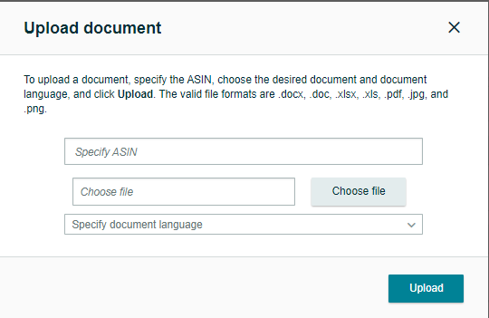 - Input ASIN and upload the SDS document. Select the language of the document (English most of the time)