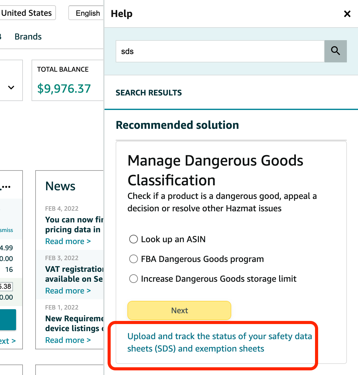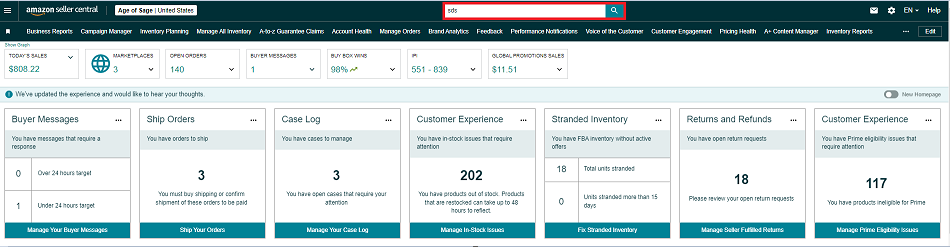 - Go to seller central and type “SDS” in the search text box on the top center part of the page. Click on the “Find” button or the suggestion text “MSDS or SDS”. (or use the link below)