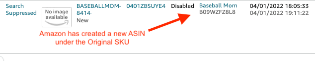(Correct Product Identifier) is now assigned to ASIN (New ASIN)