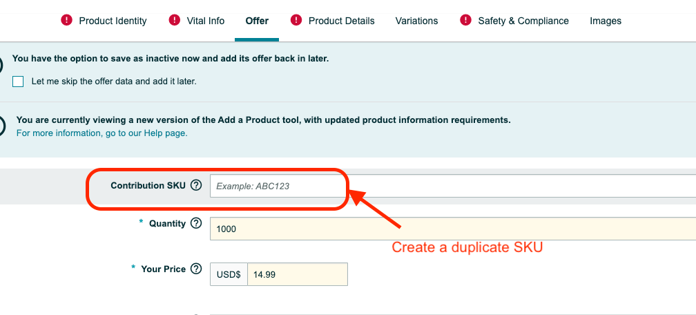 For example, The original listing has the SKU: ABC