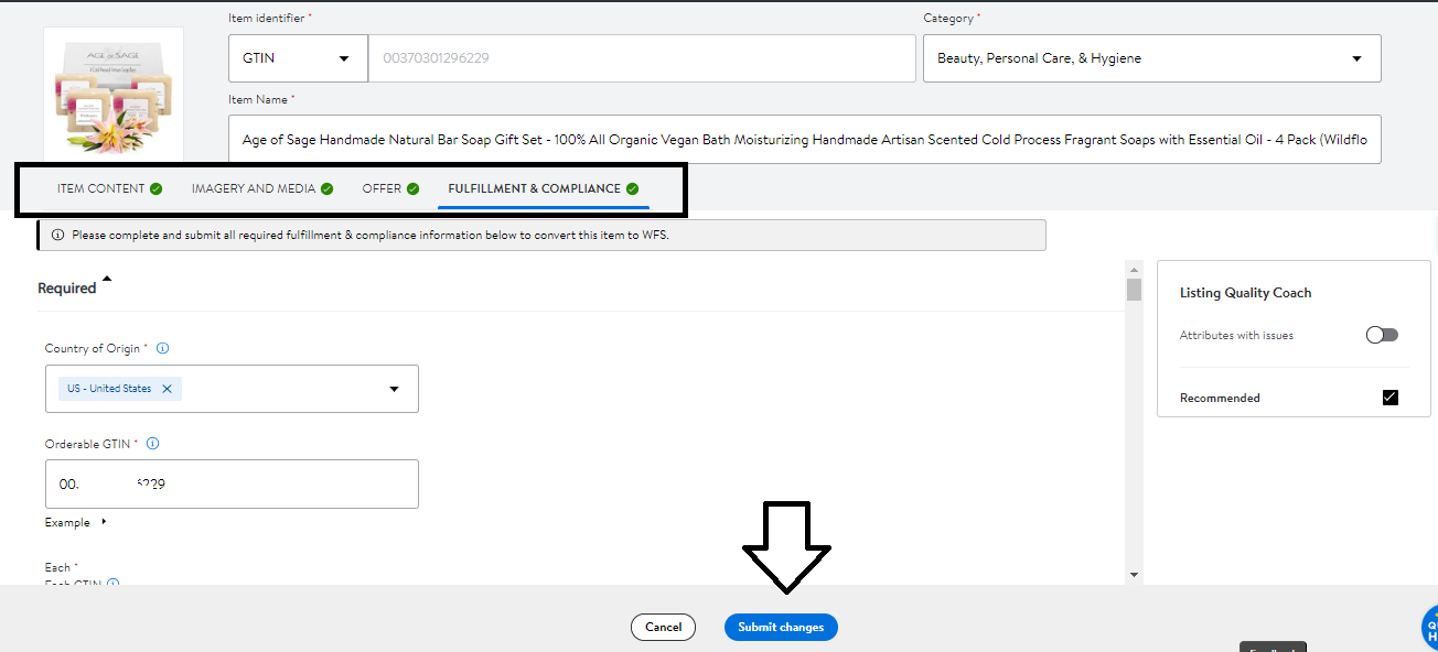 8. If no issue with the item, you will see a WFS Eligible tag on your item.