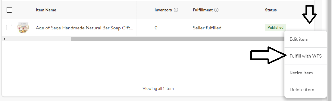 3. Click the three dots. Choose Fulfill with WFS from the options.