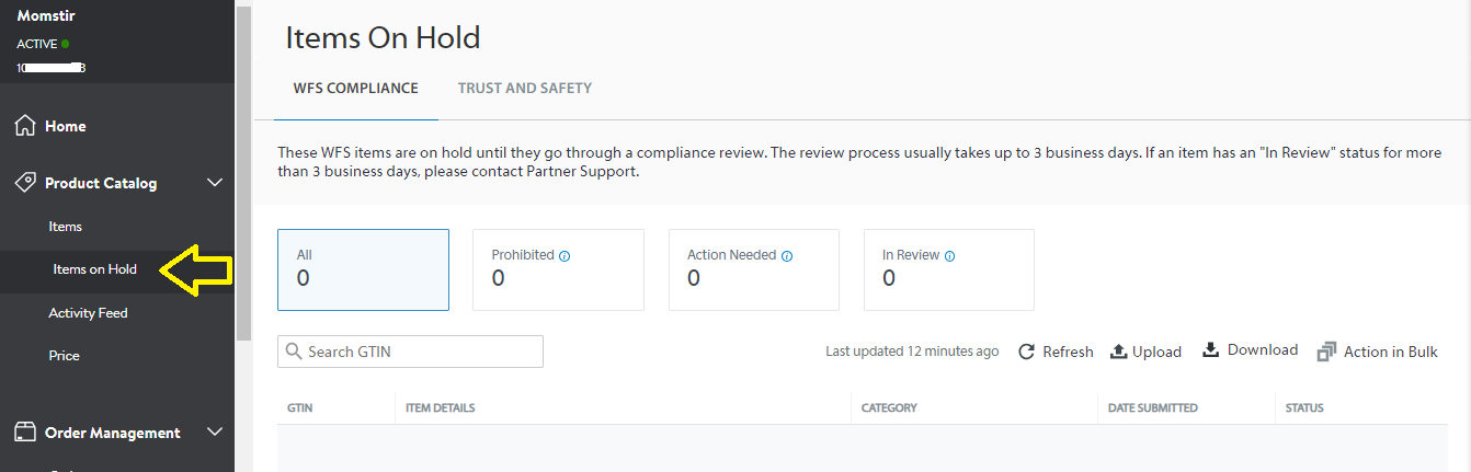 7. If your item does contain a battery or chemical or is considered as hazmat, it will fall in the Items on Hold, and Walmart review process usually takes up to 3 business days. If the item was tagged as prohibited you may need to submit a Safety Data Sheet or contact Partner Support for any necessary documents that needs to submit. Visit https://sellerhelp.walmart.com/s/guide?article=00000905 for more detail about Walmart's Trust and Safety Policies.