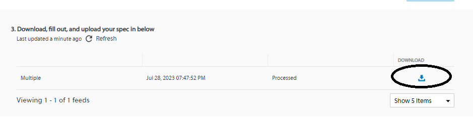 6. It may take time to process your request, depending on the number of items and categories you submitted, click refresh if needed.