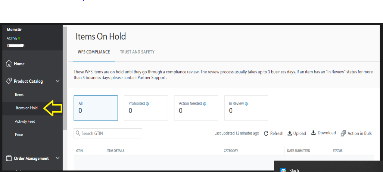 12. If your item does contain a battery or chemical or is considered as hazmat, it will fall in the Items on Hold, and Walmart review process usually takes up to 3 business days. If the item was tagged as prohibited you may need to submit a Safety Data Sheet or contact Partner Support for any necessary documents that needs to submit. Visit https://sellerhelp.walmart.com/s/guide?article=00000905 for more detail about Walmart's Trust and Safety Policies.