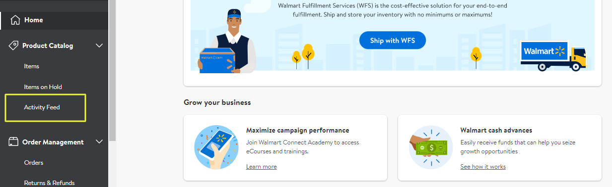 1. Log in to Walmart seller central account. Go to https://seller.walmart.com/