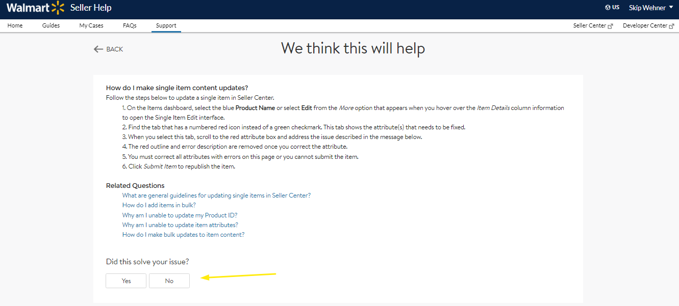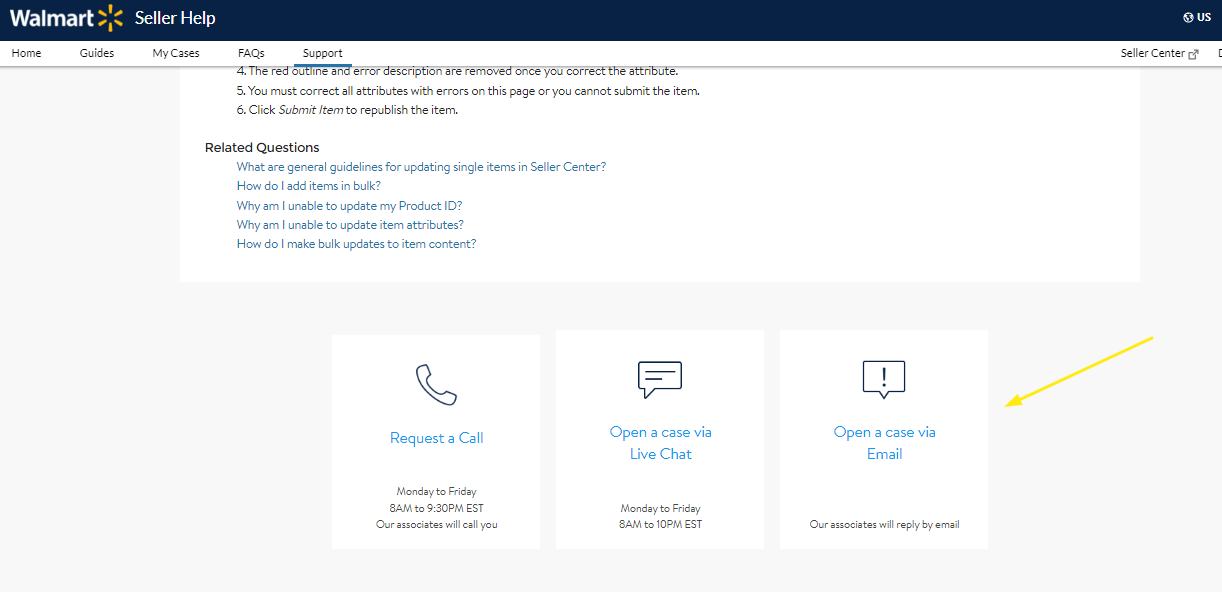 To File a Ticket to Walmart for Updating the Title, Description, Key Features, Images, etc.