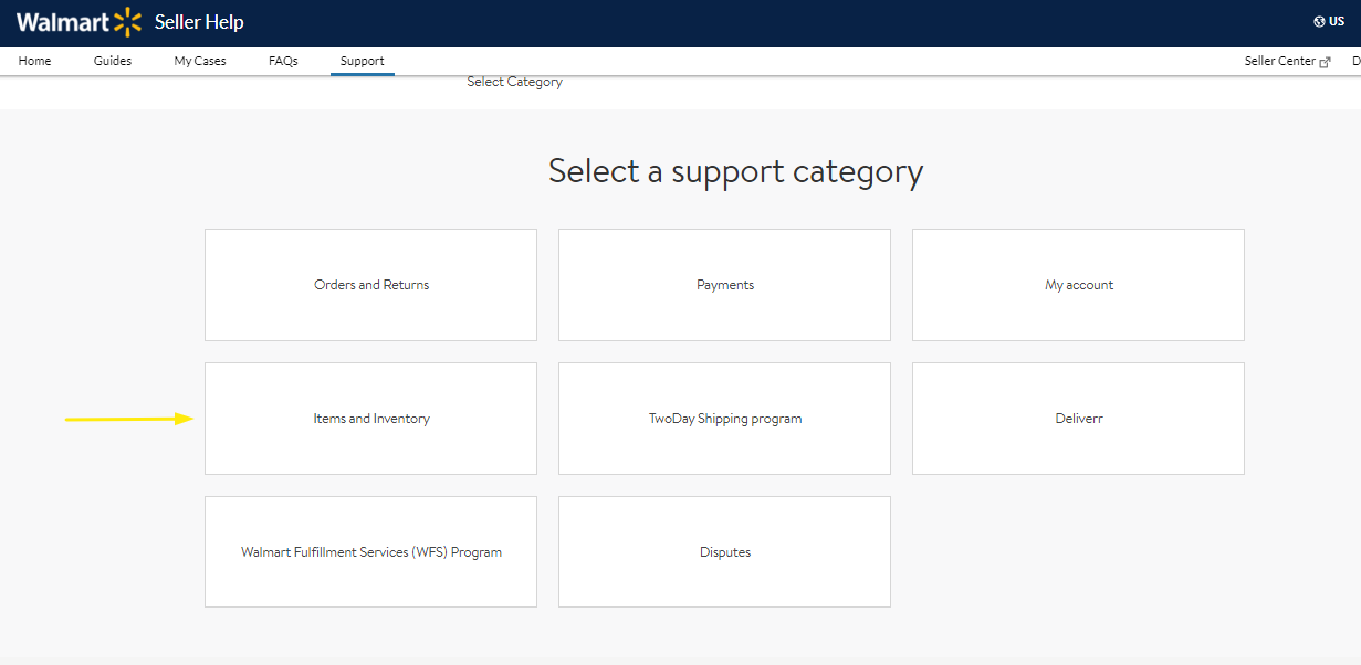 2. Select Item and Inventory from the support category,