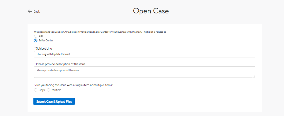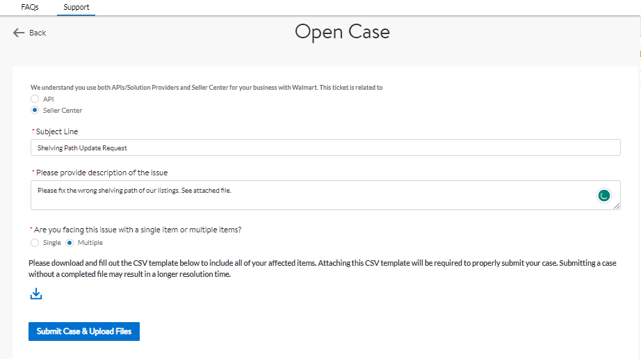 - Click Submit Case & Upload Files