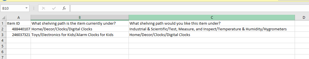 Please fix the wrong shelving path of our listings. See attached file.