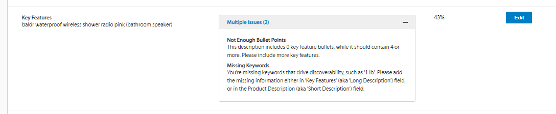 - Most probably the listing has 1 lb information from the other attributes which is why Walmart is suggesting creating bullet points copy showcasing the “1 lb “ detail.