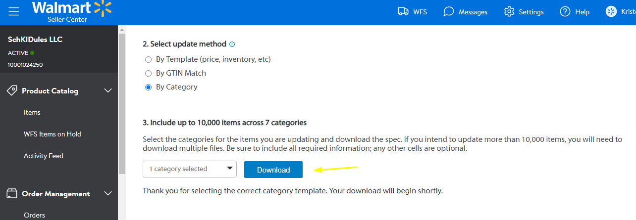 To know what is the correct product category to download. Go to the Items section and check the category of the listing that needs an update.